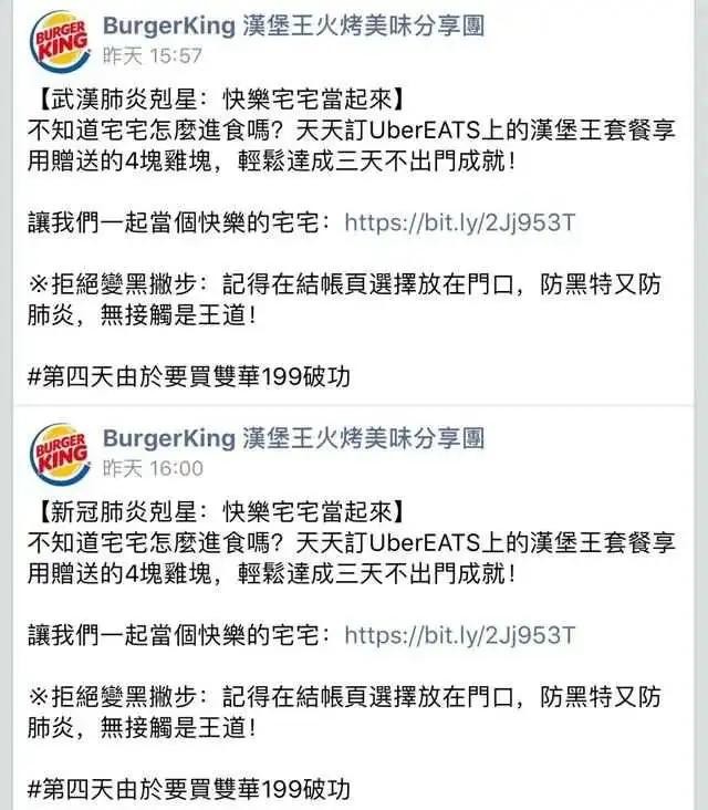 在这份声明中,汉堡王表示,汉堡王台湾地区在其脸书账号的推文里出现“武汉肺炎”文字。虽然汉堡王中国和汉堡王台湾地区是不同的两家公司进行运营,但是我们为汉堡王台湾地区不负责任的言论表示愤怒。