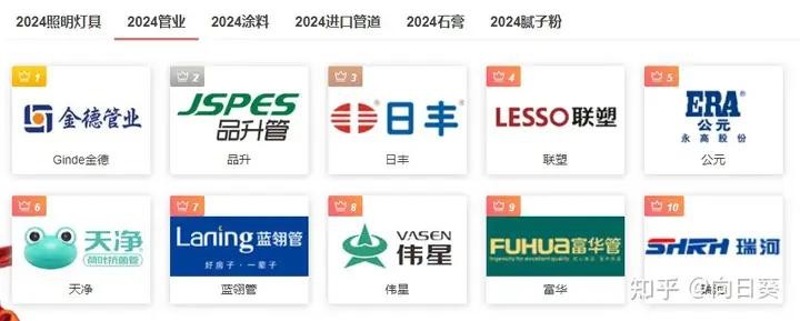2024最新水管十大品牌名单: