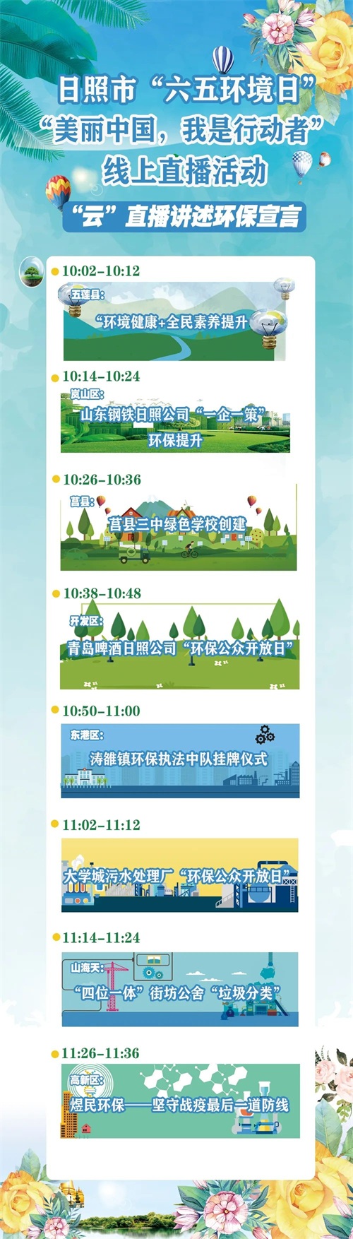 今年的6月5日是第49个世界环境日,中国发布了“美丽中国,我是行动者”的活动主题,日照市生态环境局围绕该主题充分挖掘各区县具有影响力、代表性的环保素材,以及各行各业支持生态环保工作的先进代表,广泛发动各级政府、企业、环境教育基地、绿色学校、环保社会组织、志愿者的力量,组织开展形式多样、内容丰富的线下宣教活动,并将于6月5日同步线上直播,全方位立体化展示我市生态文明建设成果,凝聚全社会保护生态环境的合力,助力打赢污染防治攻坚战!