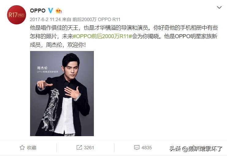 原本OPPO R11发布前营销时只有8位,不料临近发布会之际再出爆出,OPPO手机还请到了周董来做其代言人。不过周杰伦并没有开通微博,那么此次OPPO与身价不菲的周董合作是否值得,也可谓仁者见仁了。