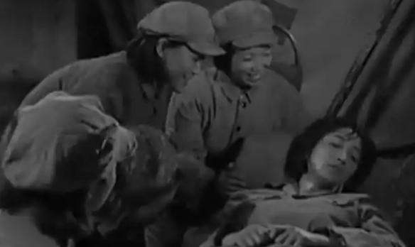 而在尸山血海之间,一名年轻的女同志悄悄倒下,身上满是烈士们的鲜血,她屏息等待,只为抓住一线生机。