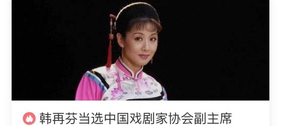 12月15日,有网友在某短视频平台曝出52岁韩再芬荣当戏剧家协会副主席的消息。