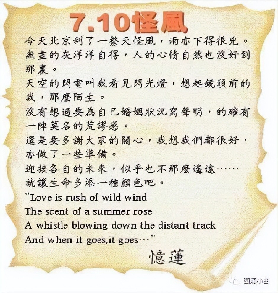 最终在2004年7月,林忆莲和李宗盛先后发表了离婚声明。(这份声明堪称娱乐圈离婚教科书)
