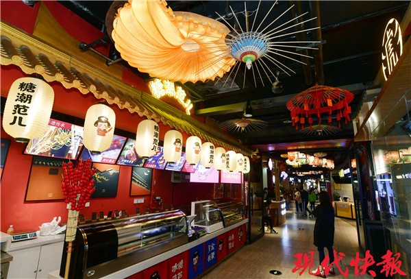 12月11日下午,现代快报记者来到莱迪探访时,发现升级后的莱迪完全大变样。负二楼还有“唐潮“专区,玄幻的艺术风格充满“唐韵”,英姿飒爽的京剧人偶、大鼓、狮子等也添加了不少喜庆气氛。“确实漂亮,跟景点似的。”有市民说。记者看到,不少人还会掏出手机拍照打卡。