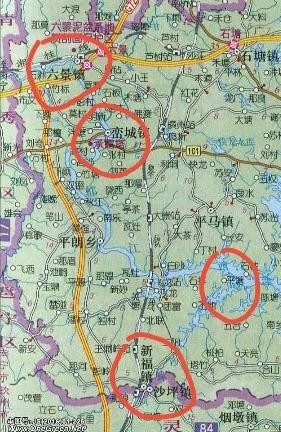 黄圈内的黄点是沙坪镇和新福镇位置