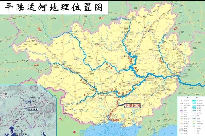 平陆运河钦州段和陆屋、沙坪位置图