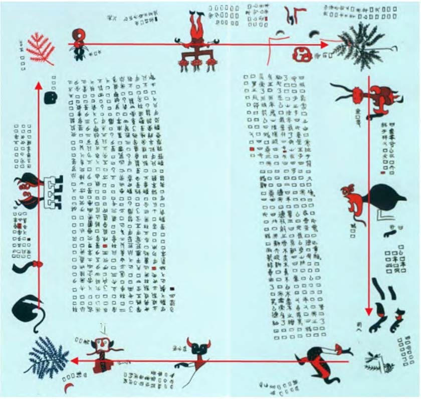 二、在混沌未分的世界中,雹戏用热(熏)气和寒(仓)气疏通山陵,开创空间秩序。他治理大地,平治水土,并支配禹、万(冥)等神祇来协助他完成创世工程。
