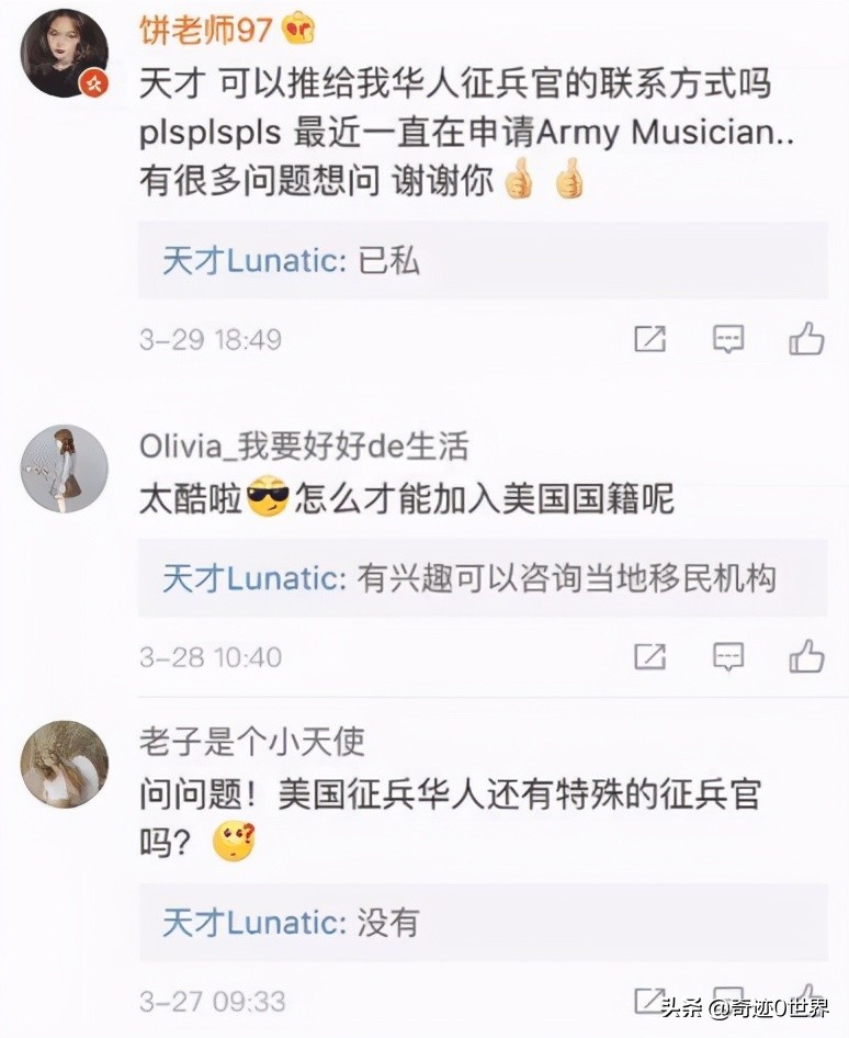 甚至到最后还打起了为美军征兵的广告,细心地给我国的网友们推荐各种美国征兵渠道,介绍如何去获得美国国籍等等!难道为了拿绿卡都不顾一切了?居心叵测,用意不良,还到处发图炫耀,觉得自己挺美挺厉害的,厚颜无耻,为虎作伥。