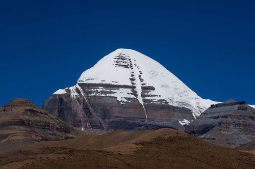 六、冈仁波齐 冈仁波齐位于阿里普兰县境内,毗邻圣湖玛旁雍措,是藏传佛教的八大神山之一。冈仁波齐虽然不是很高,但却是名扬海外,就是须弥山,即世界的中心。由于其外形像台阶,古代藏族便将其想象成是一架上下天界的梯子,或是一条天绳、木绳,它连接着天空和大地,故围绕冈仁波齐转1圈,就可以洗尽一生罪孽;转10圈就可免下地狱之苦;转100圈就可在今生成佛升天;由于释迦牟尼诞生和涅槃都是在马年,故马年转山1圈,可抵常年的13圈。 冈仁波齐与梅里雪山、阿尼玛卿山脉、青海玉树的尕朵觉沃并称藏传佛教四大神山。主峰冈仁波齐高达海拔6656米,它如一座大金字塔,耸立在阿里普兰的高原上、蓝天白云之下。冈仁波齐是世界公认的神山,圣洁不可侵犯,同时被中国西藏雍仲本教,印度教、藏传佛教、 以及古耆那教认定为世界的中心。