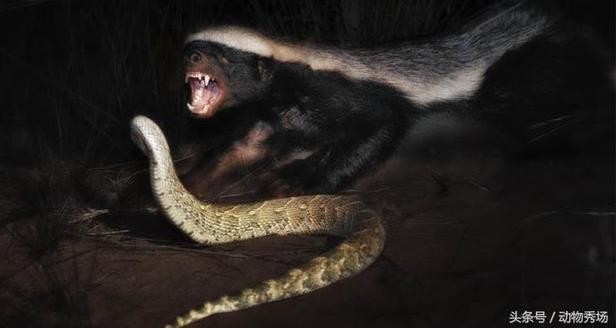 为什么很多大型的动物都怕它,那是因为蜜獾的牙齿锋利,凶狠异常,不是你死就是我亡,最重要的是你从任何角度攻击它都会被它反咬一口,因为它的毛皮与肌肉之间非常松懈,任何部位受到攻击它都会轻而易举的扭转身体进行反攻,这就意味着对手在它面前占不到任何便宜!只能被它多咬几口!