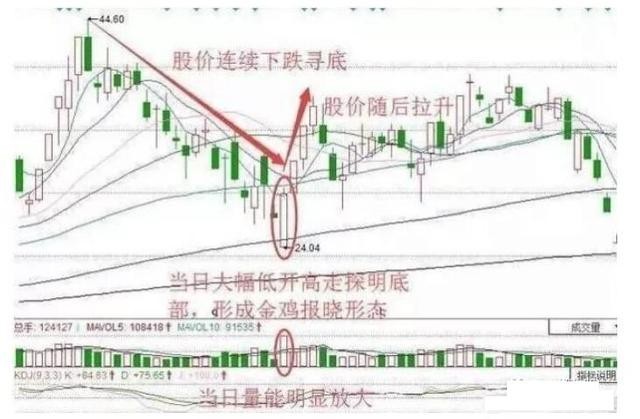 股票出现“金鸡报晓”,意味着股价将从底部开始反弹拉涨,坚决满仓进场,短期