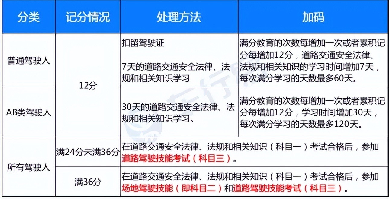 开车经常违章被扣分的人要注意了!机动车驾驶人在一个记分周期内三次以上累积记分满12分或者累积记分满36分的,应当在道路交通安全法律、法规和相关知识考试合格后,按照《机动车驾驶证申领和使用规定》第四十三条和第四十四条的规定预约参加场地驾驶技能(科目二)和道路驾驶技能考试(科目三)。也就是说,以后记分达到36分及以上的,不仅要参加满分教育学习,还要重考科目一+科目二+科目三。相比于早期试点进行的规定,即将实施的学法减分更加严格,将设有专人进行审核,发现违规行为就会恢复扣分。