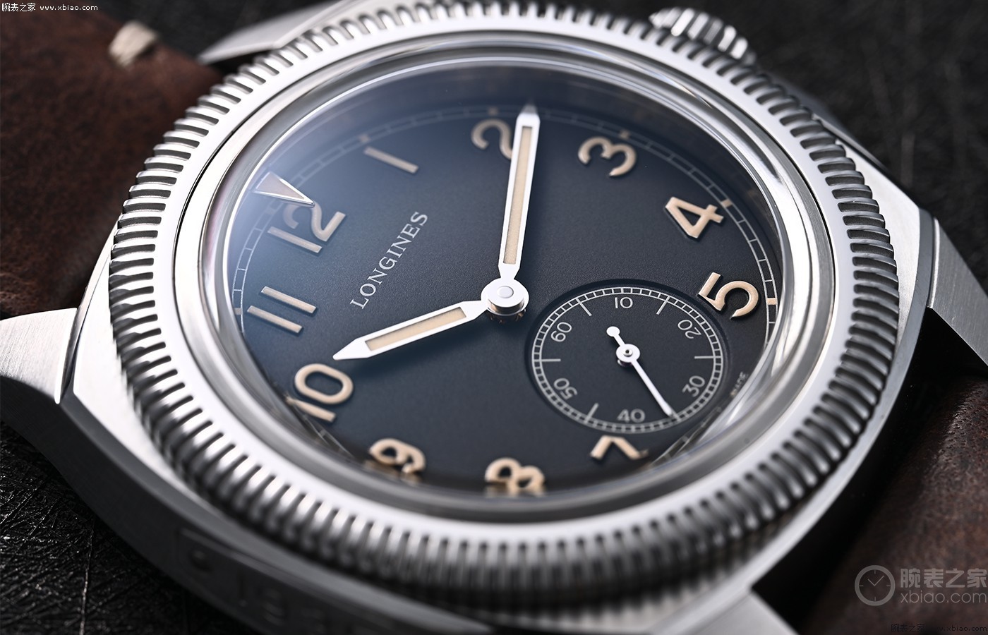 为了保证清晰可读性,腕表采用黑色哑光表盘,6点位的超大小秒盘和历史原作保持一致。和大多数浪琴复刻腕表一样,这款表“舍弃”了日历视窗,使整体风格更加完整复古。