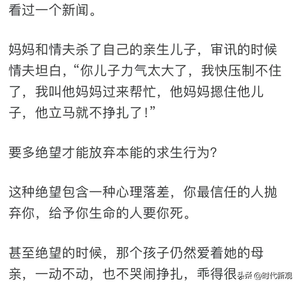 这个孩子是做体力活的,如果他努力挣扎的话,情夫和他妈不一定能控制住,但看到是妈妈来了,他就不挣扎了,这该是怎样的绝望!