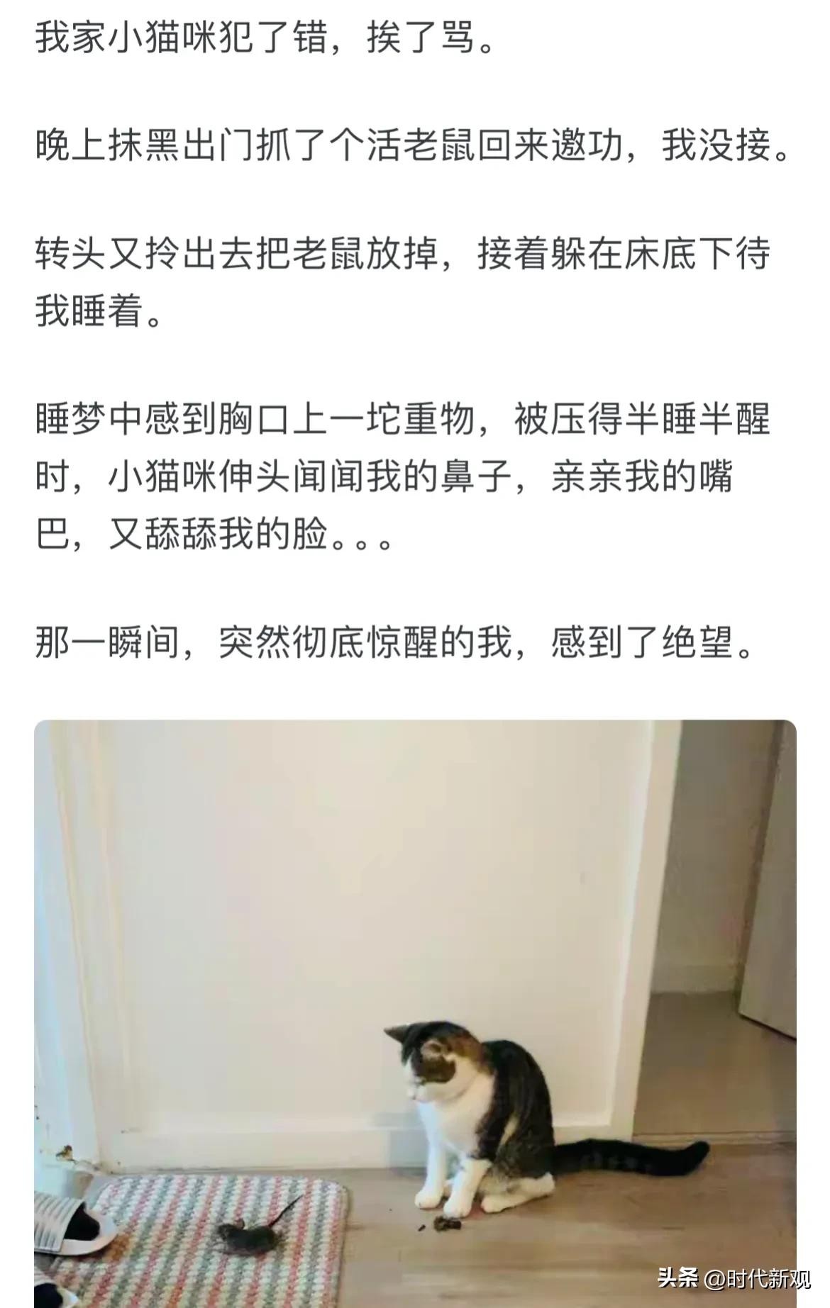 小猫咪能有什么坏心思,它只是想把最好的留给你,当然不知道老鼠身上是否携带细菌、病毒