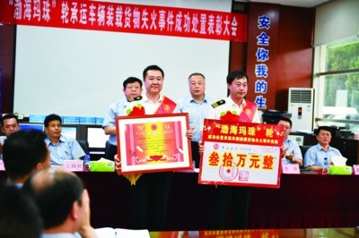大小新闻客户端6月14日讯(记者 唐寿锐 通讯员 王建波 于超群 摄影报道)6月13日下午,渤海轮渡举行“渤海玛珠”轮承运车辆装载货物失火事件成功处置表彰大会,对应急处置中表现突出的“渤海玛珠”轮授予“模范集体”称号,并奖励30万元;船长吕军才被授予“模范船长”称号,记特等功;轮机长杨勇、政委郭必涛、大副刘锴记一等功;二副张欣等12名船员记二等功。