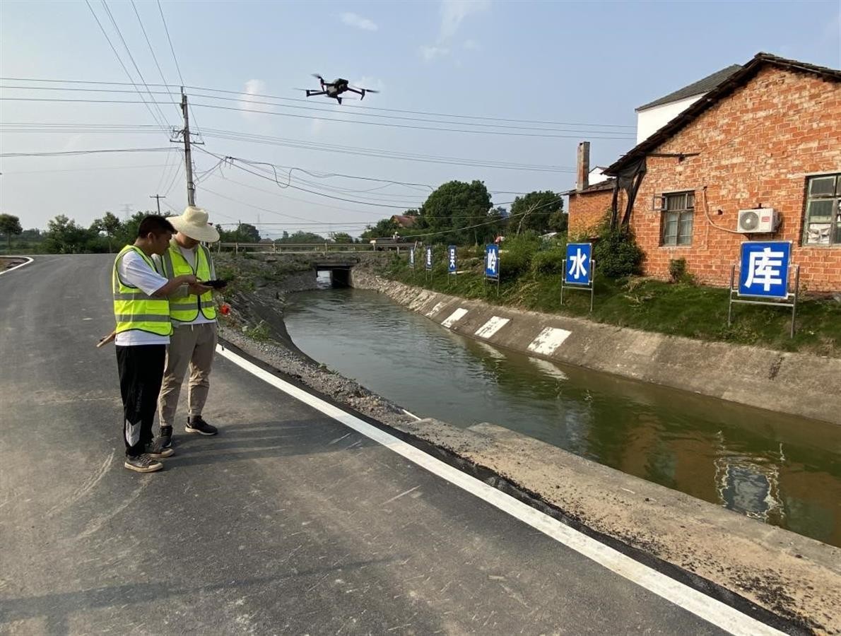 灌区工作人员利用无人机巡察灌溉水渠