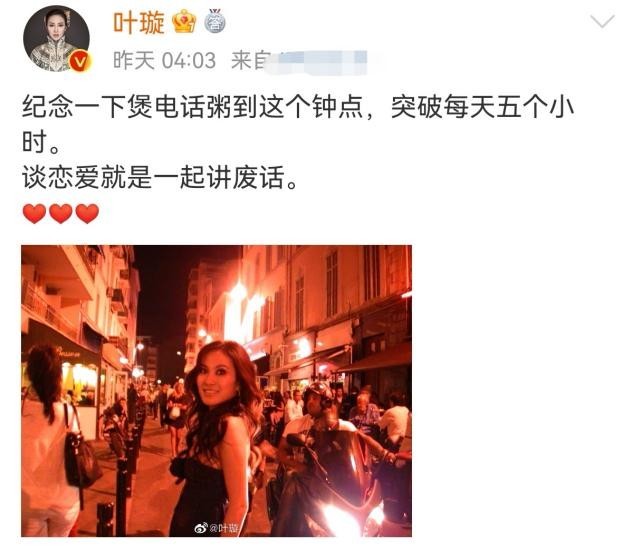 叶璇发文自曝“纪念一下煲电话粥到这个钟点,突破每天五个小时,谈恋爱就是每天讲废话”,还配上了两个爱心,从叶璇发文的时间来看当时已经凌晨四点了,打电话打到这个时间会是好朋友吗?