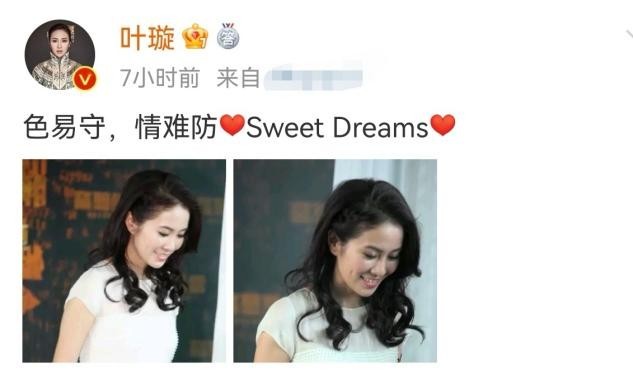 叶璇的最新发文“色易守,情难防”也像谈恋爱,这几天叶璇的社交平台几乎都透露着恋爱的气息。