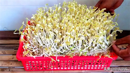嗨,大家好,这里是有趣、又涨知识的植物内容节目,我是助农学长,绿豆芽是家庭常吃的一种食物,如果在外面买回来的豆芽吃起来不放心,你可以试试在家自己种,方法简单,发芽所需时间短,就算再没耐心的人,也能成功栽培绿豆芽。