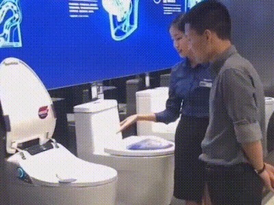 1.小姐姐正在给客户介绍马桶,马桶都听不下去了。