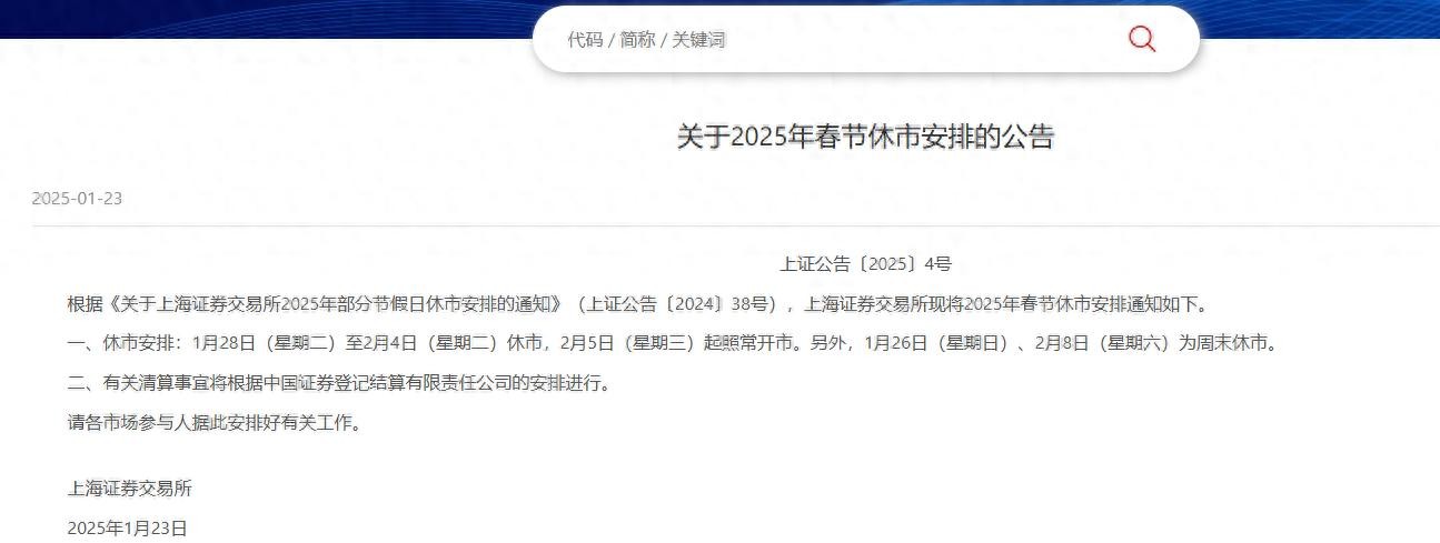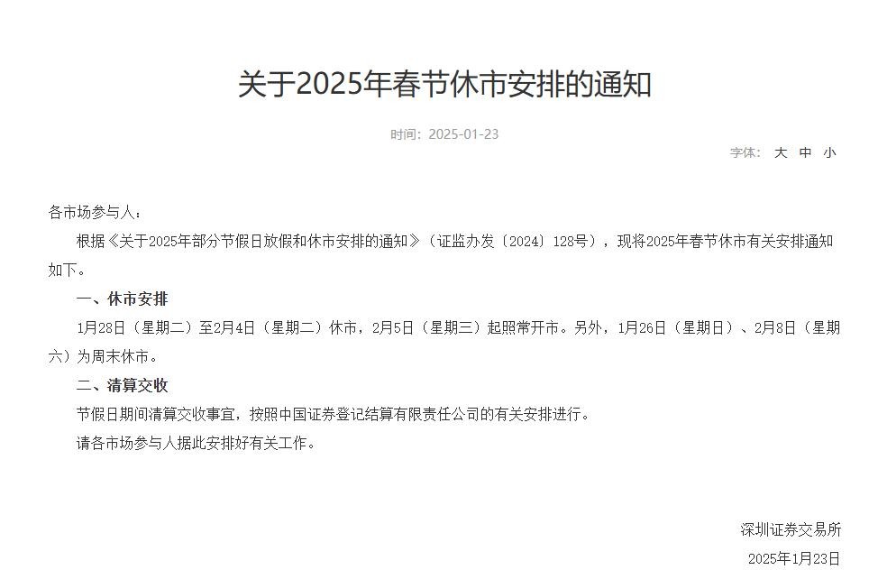 刚刚,沪深北交易所发布春节休市安排→