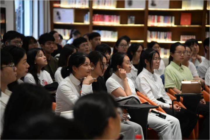 在讲座的最后,他将双手贴至大腿两侧,以军人的姿态庄重严肃地向同学们鞠了一躬,仿佛将传承红色精神的使命交付给了在场的每一位青年学子。顷刻间,台下响起了热烈无比的掌声。