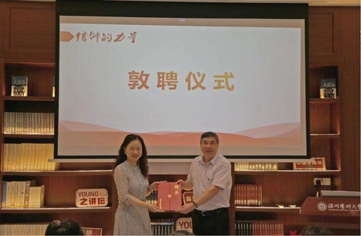 在最后的仪式上,温州医科大学第一临床医学院(信息与工程学院)聘请王善顺担任《信仰的力量》课程兼职教授,同时将与温州市军队离休退休干部休养所深化合作,授予其温州医科大学《信仰的力量》课程实践教育基地称号。