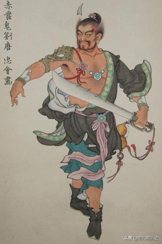 刘唐绰号赤发鬼,使得兵器是朴刀,上梁山后担任步军首领,从梁中书为给岳父蔡京贺寿,搜刮十万贯金珠宝贝,命杨志押送,刘唐得知后,便想要劫取生辰纲,而后联合晁盖、吴用等七人,成功将生辰纲截获,因此上了梁山,攻取大名府时,击杀了王太守,东昌府之战时,砍伤张清战马,梁山接受招安后,在征讨各地头目中立下了汗马功劳,征讨方腊时,斩杀润州统制官“巨灵神”沈泽,可惜最后被千斤闸门砸死,实在是非常可惜。
