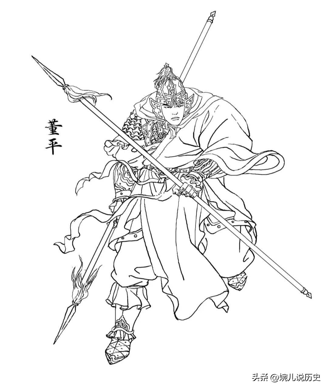 董平绰号双枪将,上梁山后马军五虎将,早年担任东平府兵马都监,有万夫不当之勇,被扈三娘、孙二娘活捉,便归顺了宋江,杀死程万里,并夺其女为妻。两赢童贯时,担任“虎军大将”, 刺死唐州兵马都监韩天麟,三败高俅时,与王文德三十回合不分胜负,征讨辽国时,刺杀耶律国珍,征讨田虎时,斩杀守将沈骥,伏击卞祥,二十余合斩杀北将樊玉明。征讨方腊时,不到十合便刺死守将韩明。可惜最后被拦腰一刀砍死。