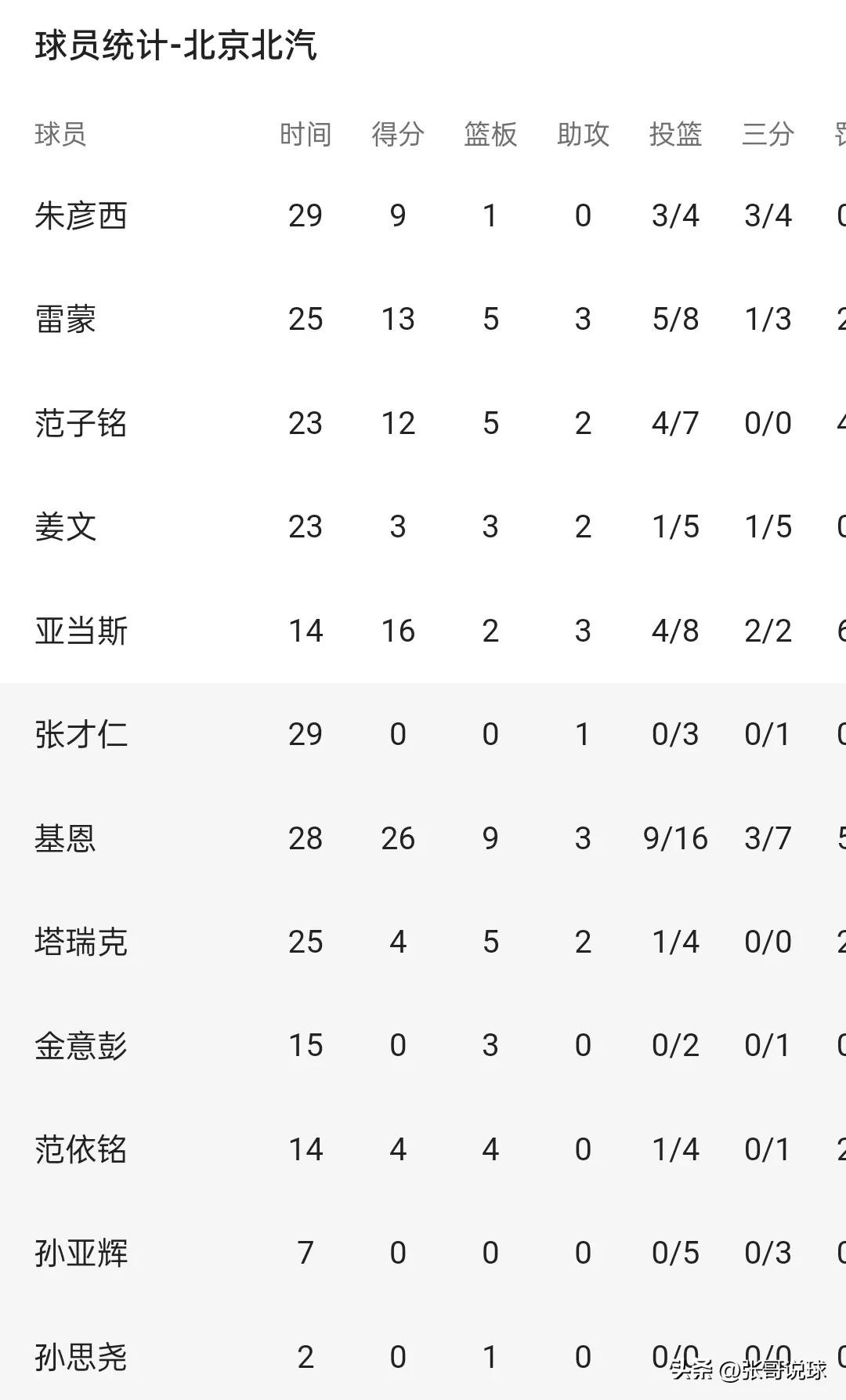 广东队今天只有5次罚球,北京罚球得到21分,这种情况下北京还是赢不了,可见运动战中命中率有多低。广东队沃特斯28分4板9助,胡明轩18分,布鲁克斯13分,任骏飞16分。北京队基恩26分9板3助,亚当斯16分,雷蒙和范子铭也得分上双。曾凡博和翟晓川缺阵。