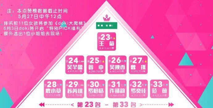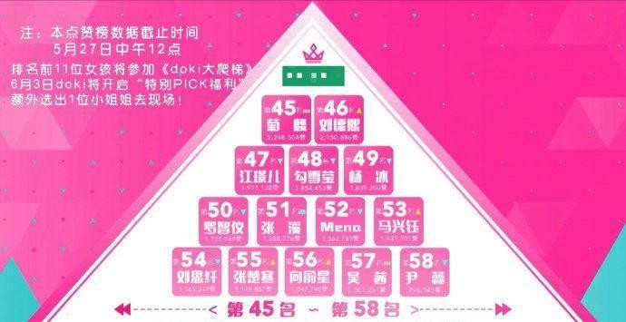 有晋级就有淘汰,在此次排名中,选手王晴、朱天天、于美红、葛佳慧、刘思纤、热依娜等被淘汰,而此前因在《创造101》中凭借实力大火的王菊在5月26日的排名中仅排在36名,未能进入前20的榜单。