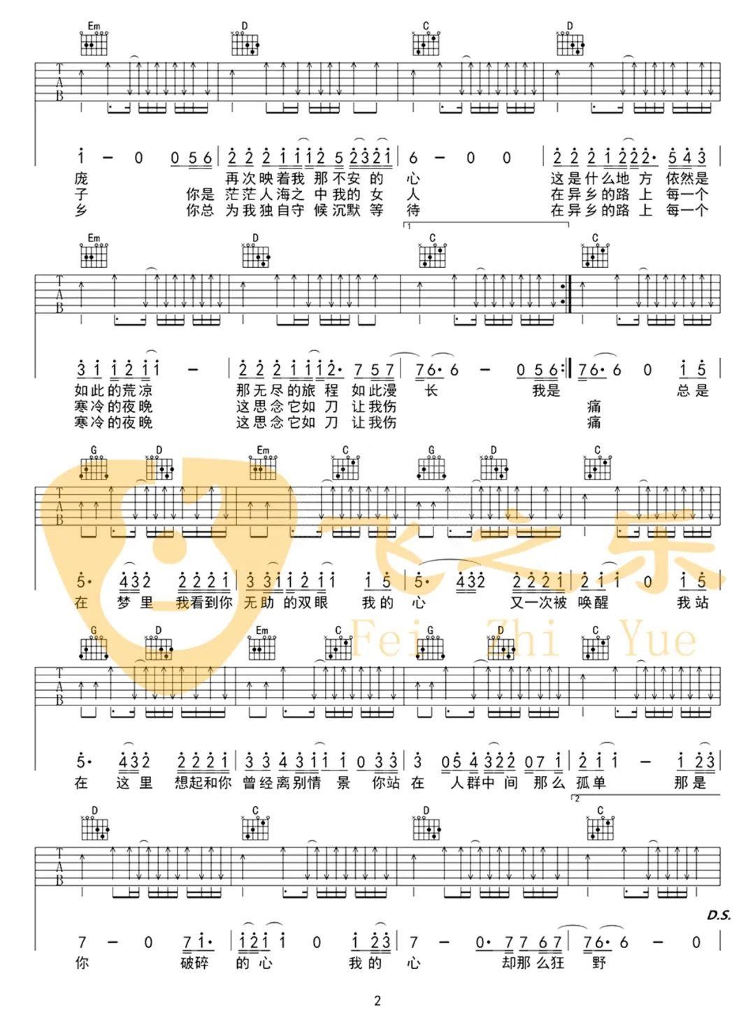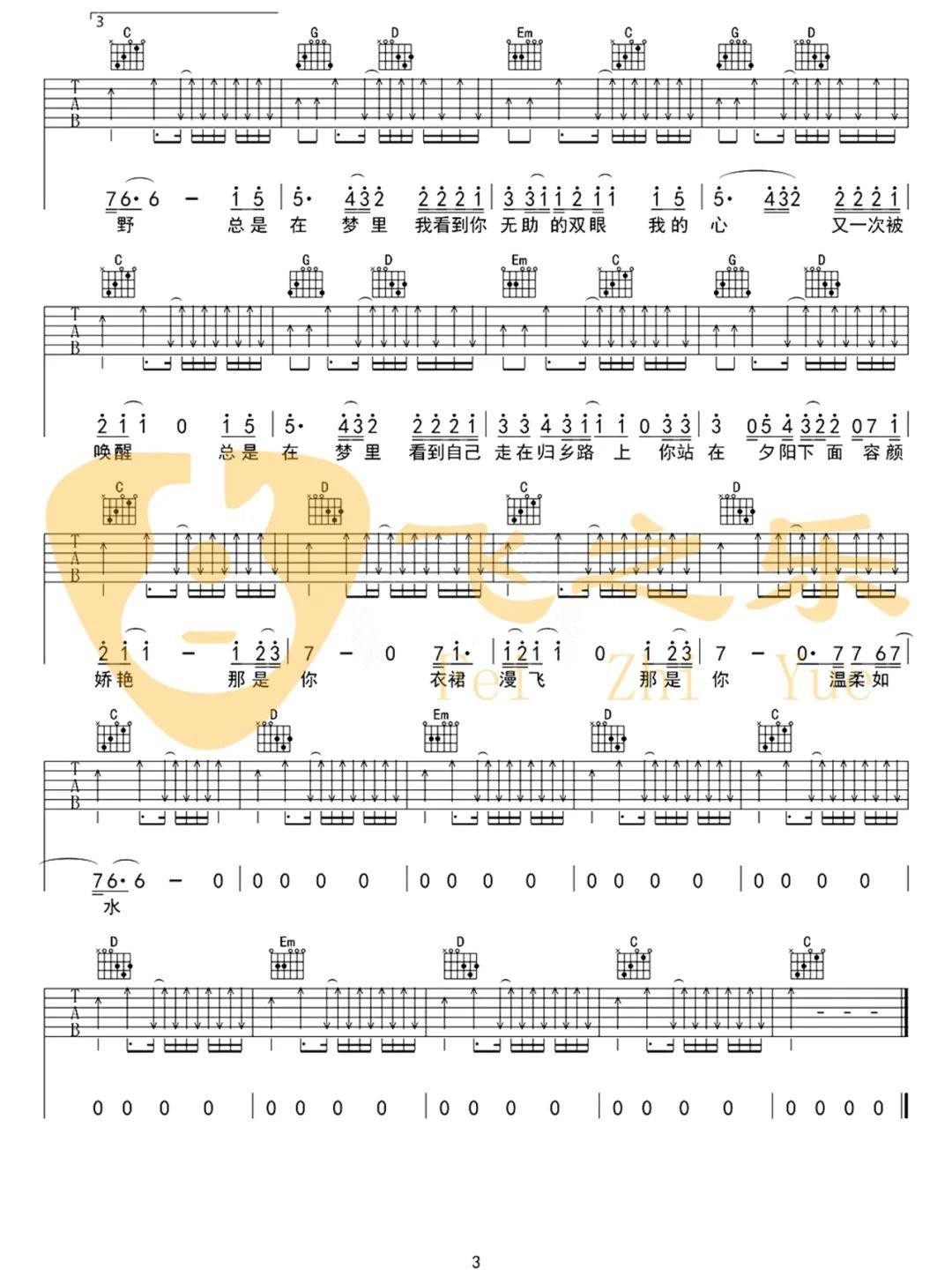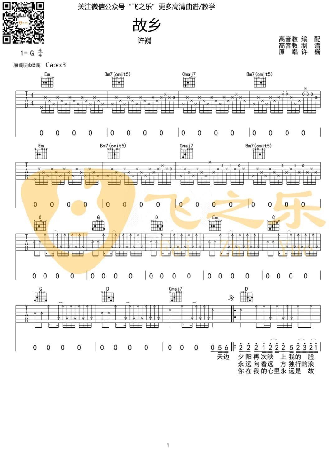 《故乡》吉他谱
