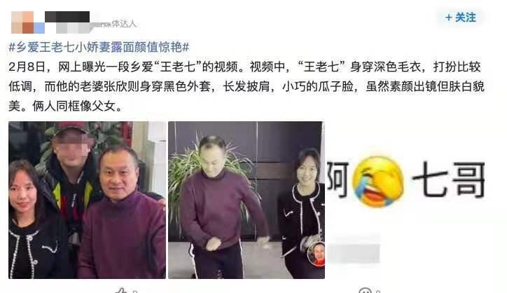 2月8日,有网友在社交平台上曝光“王老七”与妻子热舞视频。