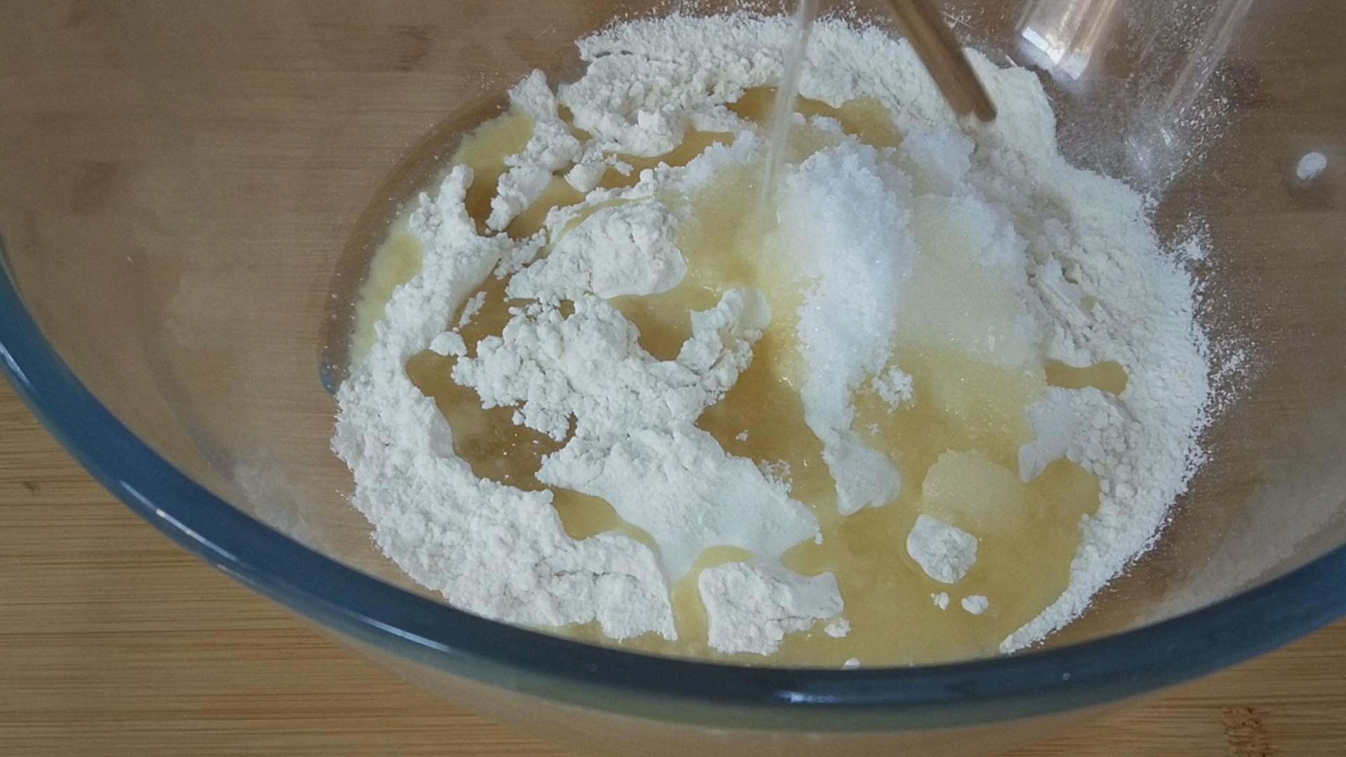 12、倒入85克的清水,边倒边搅拌,少量多次地加入