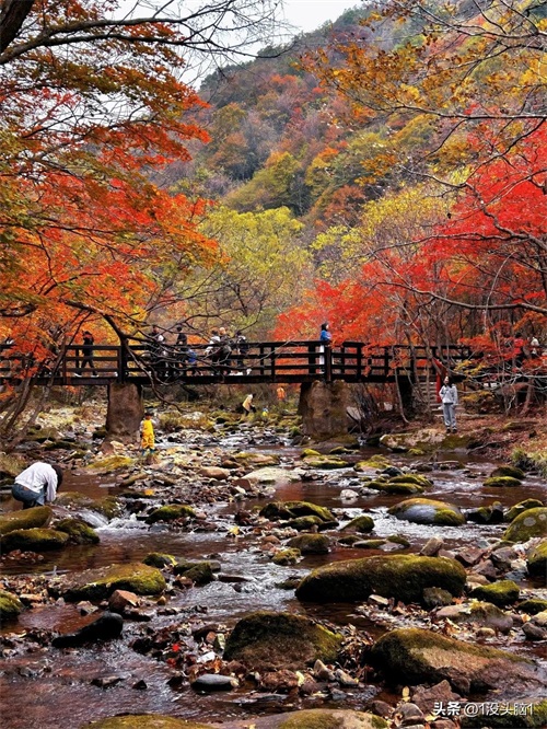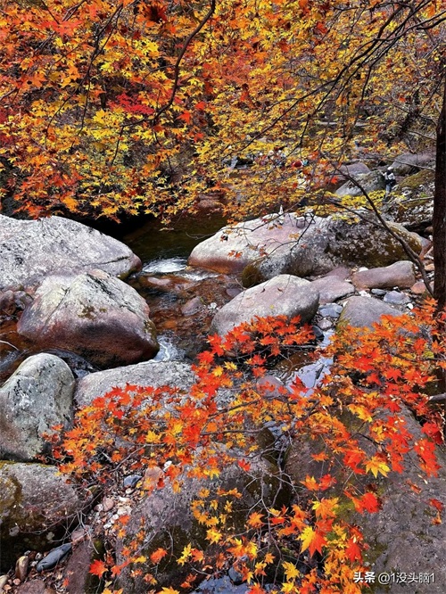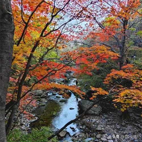 每年十月中旬,老边沟的红叶进入最佳观赏期 。此时,漫山遍野的枫叶如火如荼,从谷底到山巅,万山红遍,层林尽染。枫叶的颜色丰富多样,有热烈的火红,有灿烂的金黄,还有深沉的紫红,它们相互交织,与碧水蓝天相映成趣,仿佛是大自然精心绘制的一幅油画 。沿着山间小径漫步,脚下是厚厚的落叶,绵软而富有诗意,空气中弥漫着淡淡的草木清香,让人陶醉其中,流连忘返。