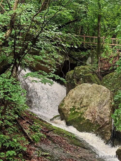 老边沟瀑布是景区最著名的景点之一,瀑布水势汹涌,从高处倾泻而下,形成了壮观的景象 。站在瀑布下,听着水流的轰鸣声,感受着水花四溅的清凉感,仿佛所有的烦恼都被这奔腾的水流冲刷殆尽。阳光洒在瀑布上,折射出五彩的光芒,如梦如幻,让人忍不住拍照留念。