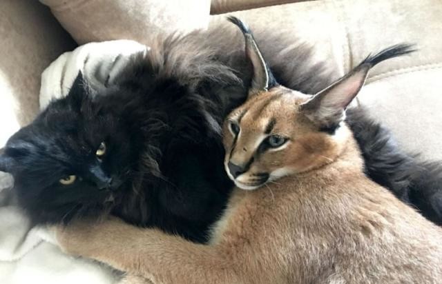 与家猫在一起除了体型大了些好像没啥不像家猫的哈