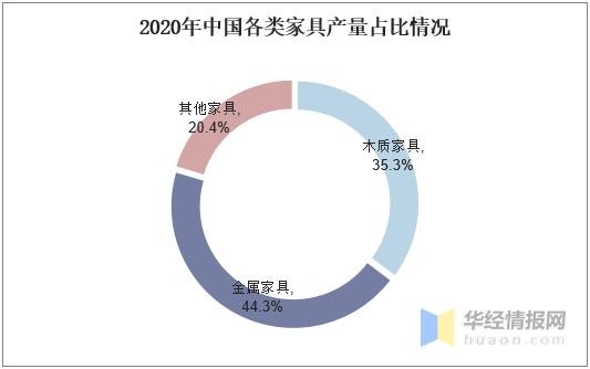2020年中国家具总产量为912210420件,其中木质家具产量为321572688件,占家具总产量的35.3%;金属家具产量为404385415件,占家具总产量的20.4件。