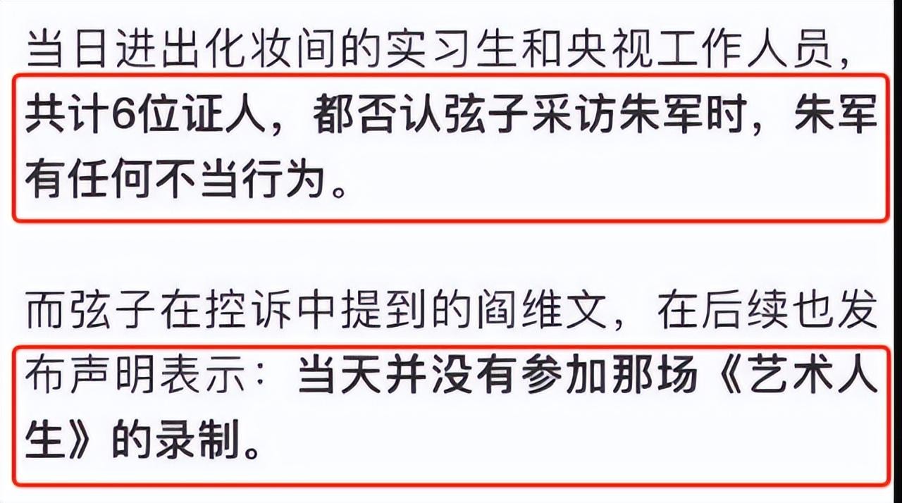 最重要的是,弦子口口声声说当时是因为著名歌唱家阎维文到场,朱军才停止了性骚扰的行为。