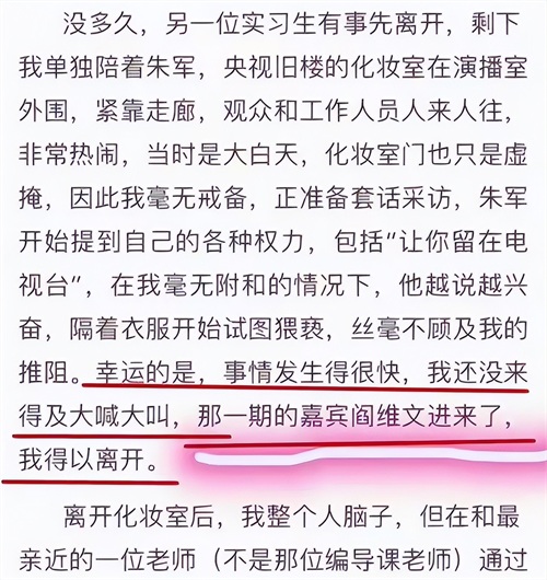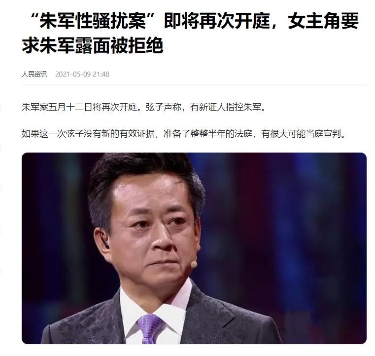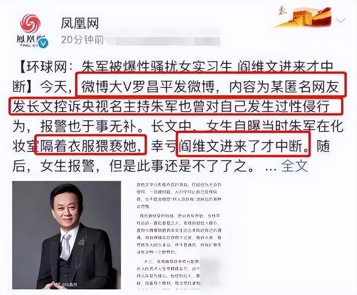 2018年,央视实习生“弦子”,发长文控诉主持人朱军,曾经对她进行过长达50分钟的性骚扰。