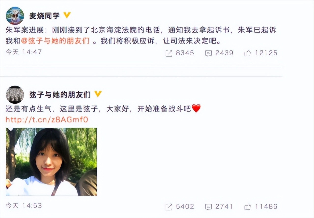 随着案件的进展,朱军选择起诉弦子,指控她损害其名誉权。而弦子也不甘示弱,对朱军提起反诉。