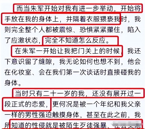 2020年12月22日,朱军再次在微博上发布长文回应,详细阐述了自己的立场,字字泣泪地向网友否认了“性骚扰”事件:
