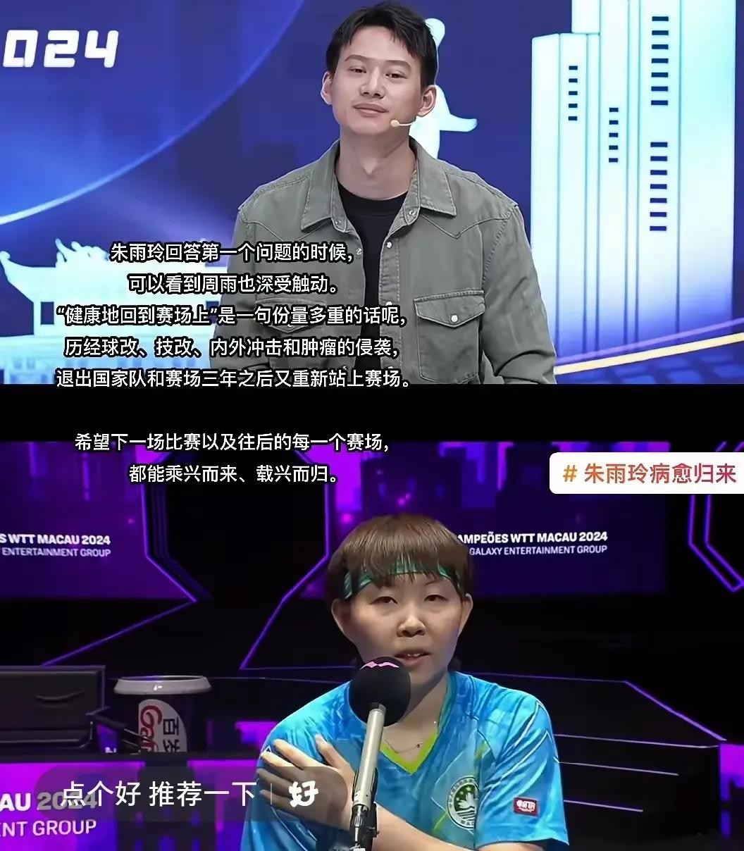 不过呢,朱雨玲心里对乒乓球的那团火可没灭。2024 年的时候,她就像浴火重生的凤凰一样,带着一身的坚韧劲儿,又回到了那个让她热血沸腾的赛场,开始了复出之路。在澳门冠军赛上,她又出现在大家眼前了。虽说长时间没打比赛,一开始她打得有点生疏,以前那种顺溜的状态好像被一层纱给盖住了似的。可她眼神里透着一股特别坚定的信念,那就是对胜利的渴望,对乒乓球咋也放不下的热爱呀。这信念就跟亮堂堂的灯塔似的,在迷迷糊糊的赛场上给她指方向呢。
