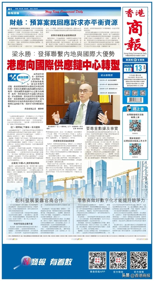 香港特区政府经济顾问梁永胜接受香港商报访问时称,香港具有联系内地与国际市场的大优势,要向国际供应链中心这个方向转型。