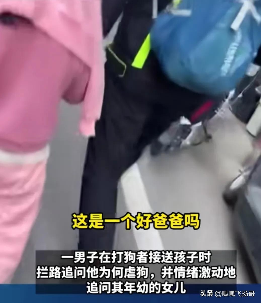 爱狗人士到幼儿园门口骚扰打狗男子女儿