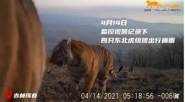 近日,吉林省珲春市境内,一只东北虎妈妈带着三个虎娃春游嬉戏,视频通过东北虎豹国家公园:天地空一体化检测系统“实时传回。