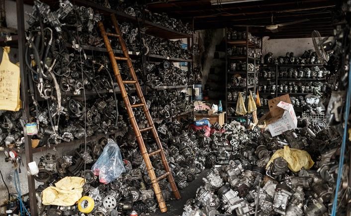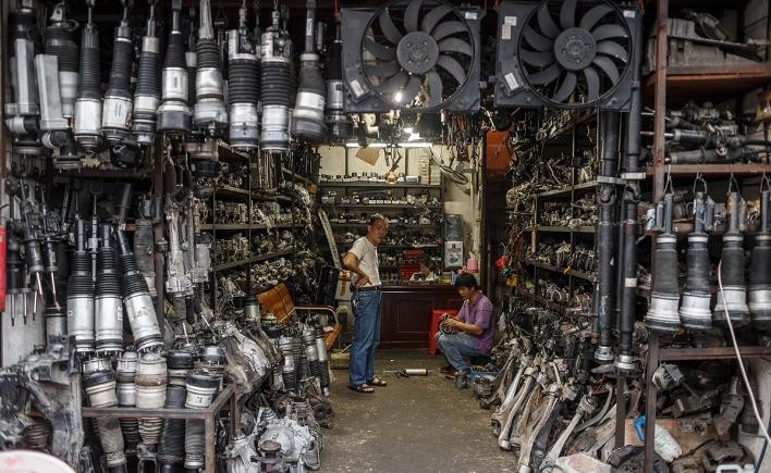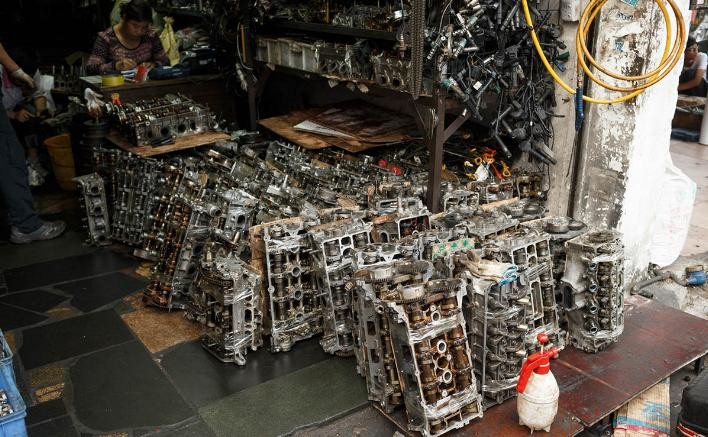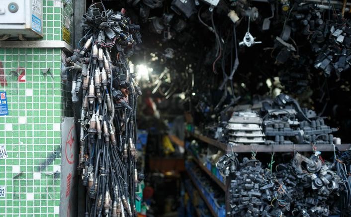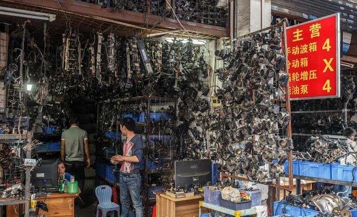 陈田对于汽车配件来说是一个神奇的存在,称之为中国最牛汽配城也不为过,这里更像是一个汽车屠宰场,不管是事故车、报废车、二手车到这里都被屠夫一样的汽配城小哥分拆,清理,打包,再销售,下面几张图大家感受一下,密集恐惧症患者慎点。