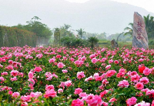 三亚亚龙湾国际玫瑰谷位于三亚市亚龙湾国际旅游度假区内,总占地2755亩,是以“玫瑰之约,浪漫三亚”为主题,以农田、水库、山林的原生态为主体,以五彩缤纷的玫瑰花为载体,集玫瑰种植、玫瑰文化展示、旅游休闲度假于一体的亚洲规模最大的玫瑰谷。