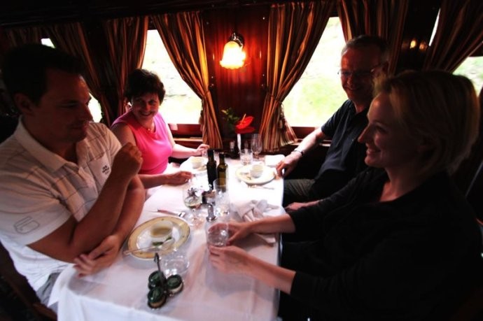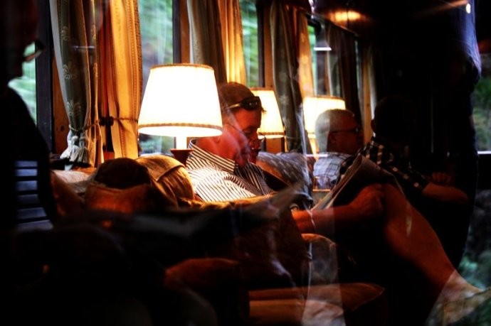 很快休闲车厢就挤满了人,套用一个经典句式,我不是在餐车吃饭,就是在休闲车厢喝酒
